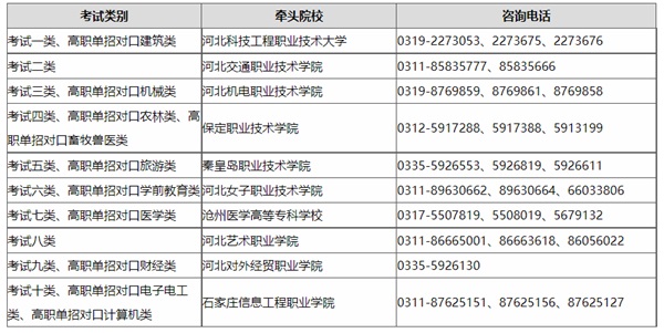 附:高职单招各类牵头院校咨询电话