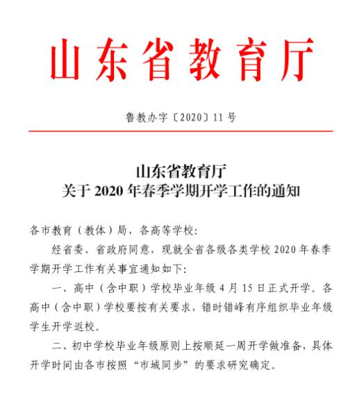 山东:山东明确分类分批错时开学顺序 毕业年级学生优先返校